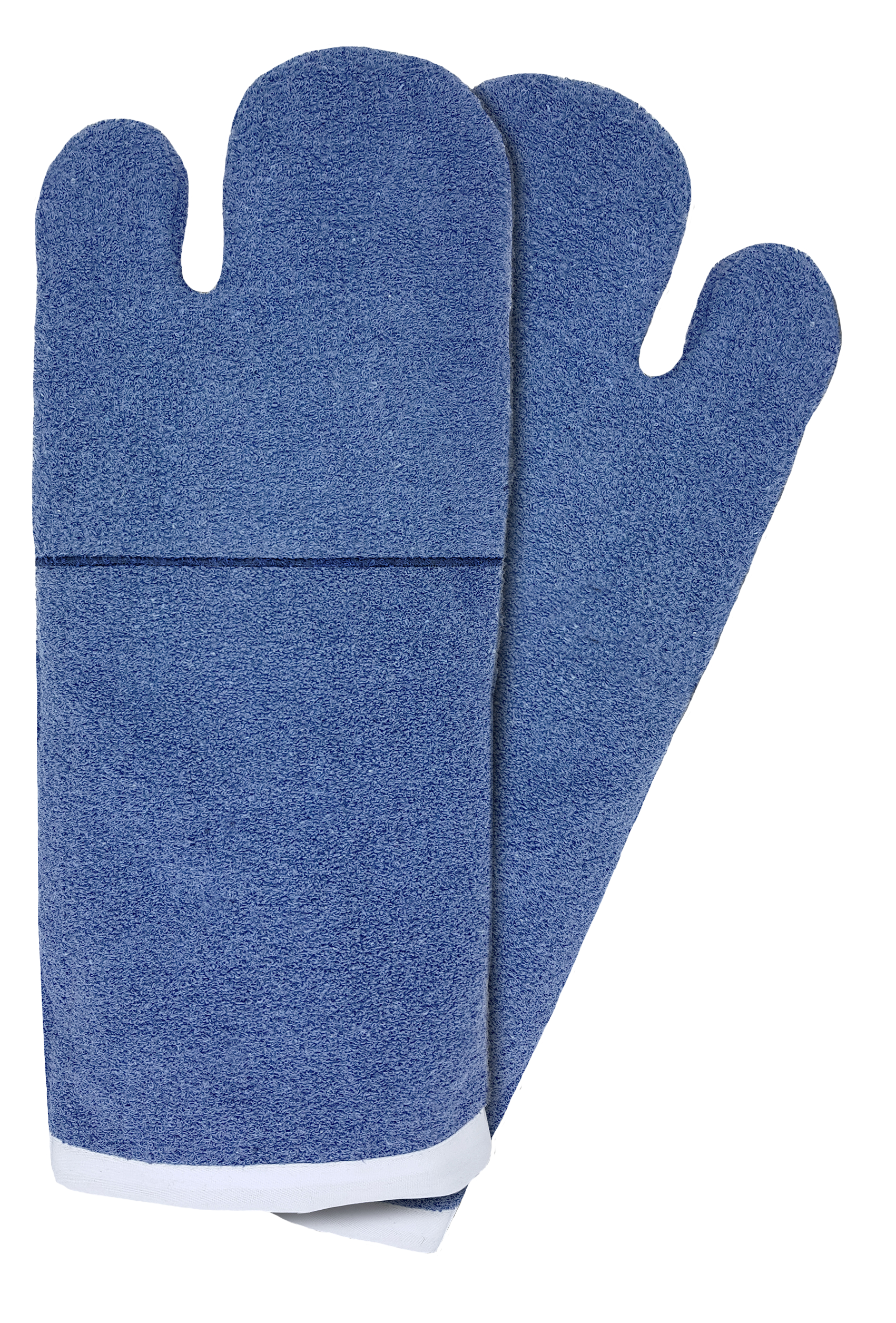 Luva de grafatex atoalhado térmico, forro isolante, modelo mão de gato (2 dedos), comprimento 50cm.