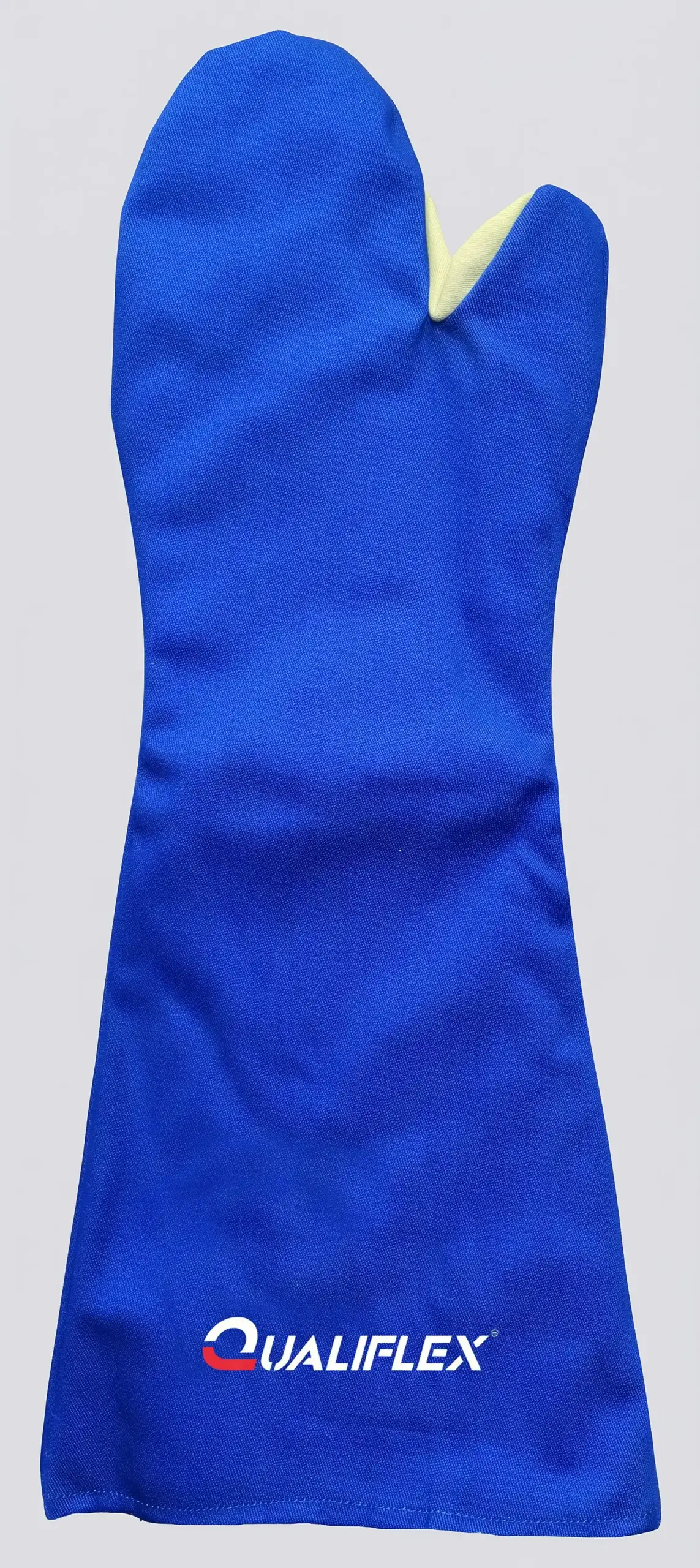Luva confeccionada em tecido de algodão com tratamento impermeabilizante atóxico e retardante a chamas, forro removível de feltro térmico e brim, costurada com linha de aramida antichamas, comprimento total de 60cm.
