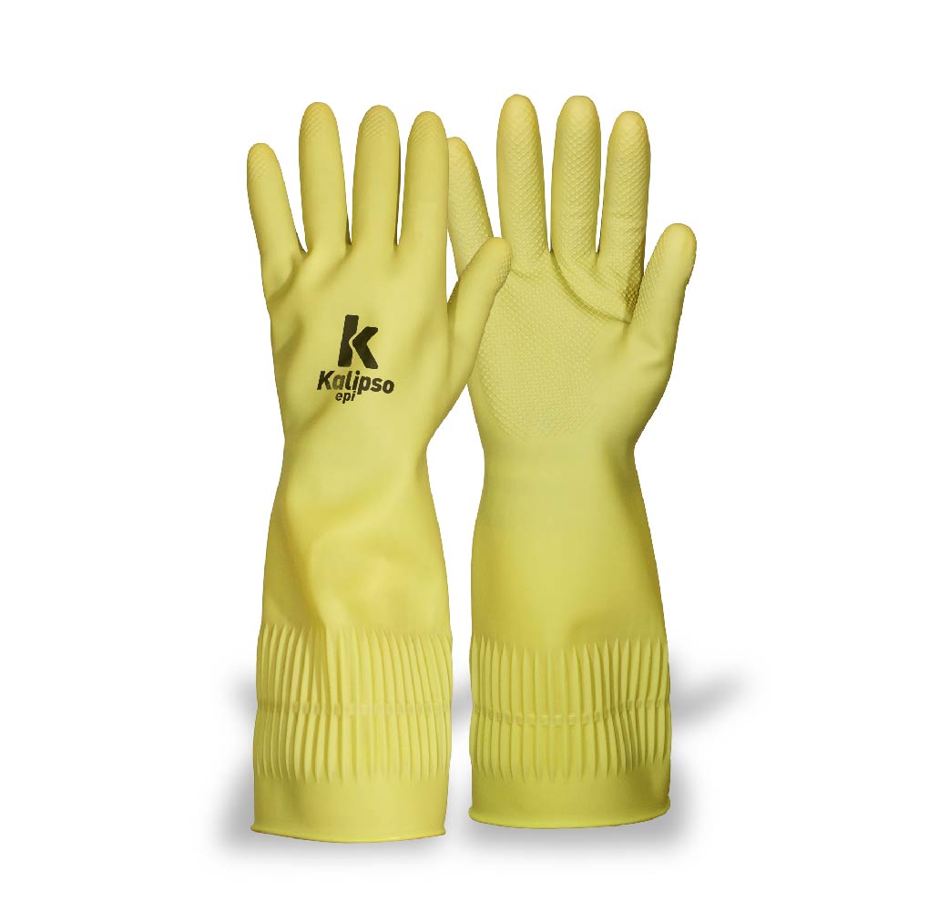 Luva de segurança confeccionada em látex natural sem forro interno. Acabamento antiderrapante na palma, face palmar e extremidade dos dedos. Punho ranhurado na região do antebraço, e acabamento em virola na sua extremidade.