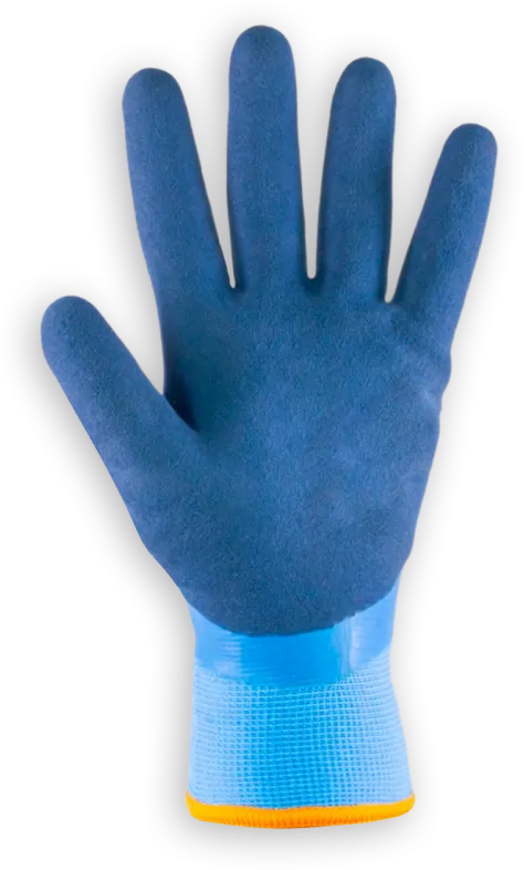 Luvas de proteção confeccionada em poliamida sem costura, forro interno em acrílico fleece com revestimento total em borracha natural na palma e dorso das luvas e revestimento em borracha natural “foam tipo sandy” na palma e ponta dos dedos. Punho tricotado com elástico e acabamento em overloque.