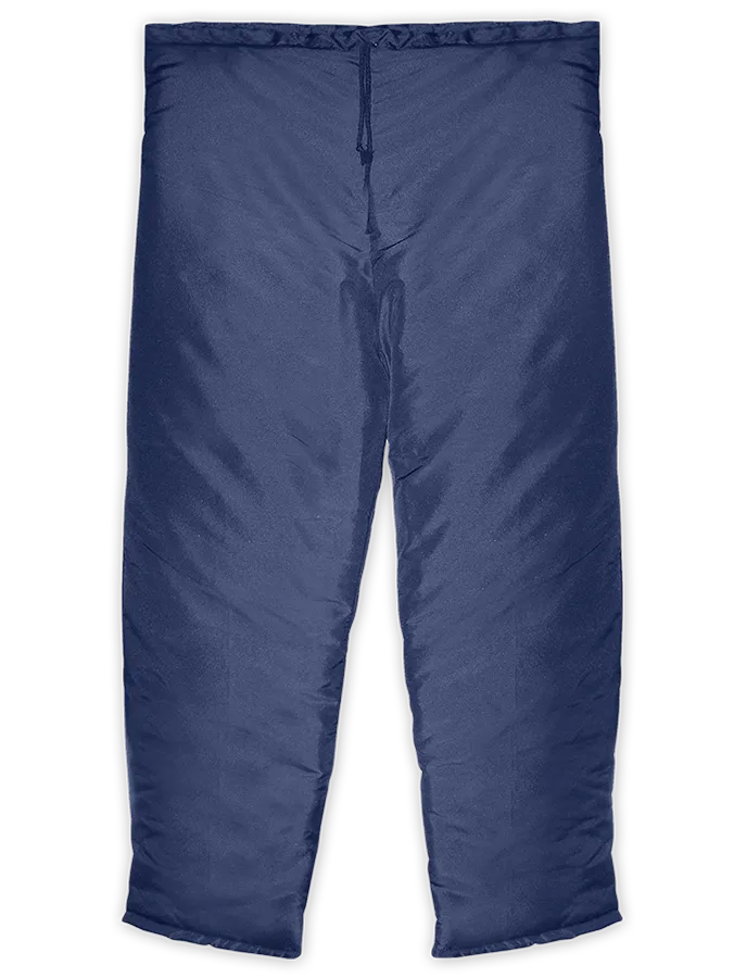 Calça térmica confeccionada em nylon resinado, manta térmica interna de poliéster de 150g/m², acabamento externo liso, acabamento interno matelado, fechamento através de cordão de algodão preto na cintura.