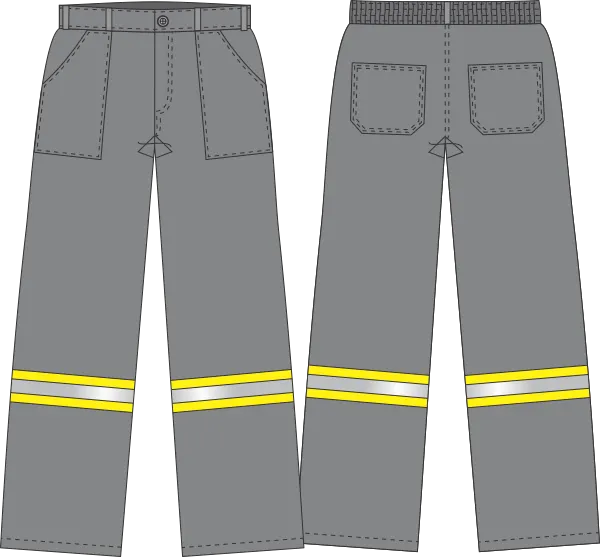 Calça Fire WE, fechamento botão retardante a chama, braguilha botão com proteção, cós traseiro elástico de 50mm, 5 passantes. 2 bolsos frontais tipo carpinteiro, 2 bolsos traseiros chapados. Reforço entre pernas, com faixa refletiva. Tecido Dynamo FR 100% algodão