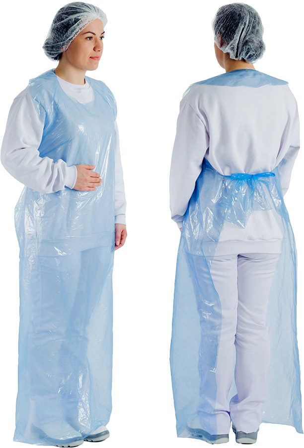 Avental de segurança impermeável, confeccionado em resina de polietileno na cor azul.