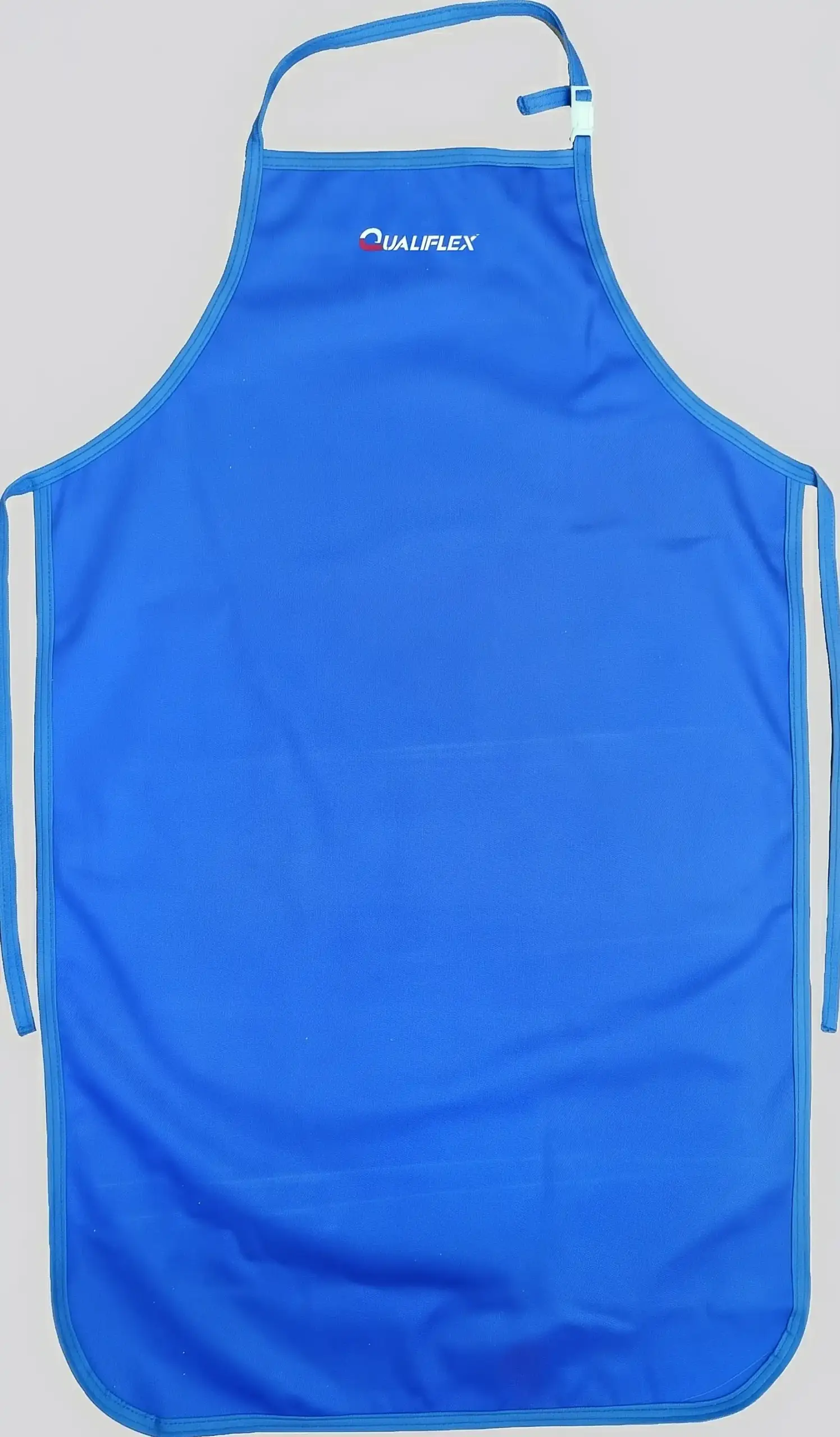 Avental confeccionado em tecido de algodão com tratamento impermeabilizante atóxico e retardante a chamas, tiras ajustáveis no pescoço e na cintura. Totalmente costurado com linhas de aramida antichamas.