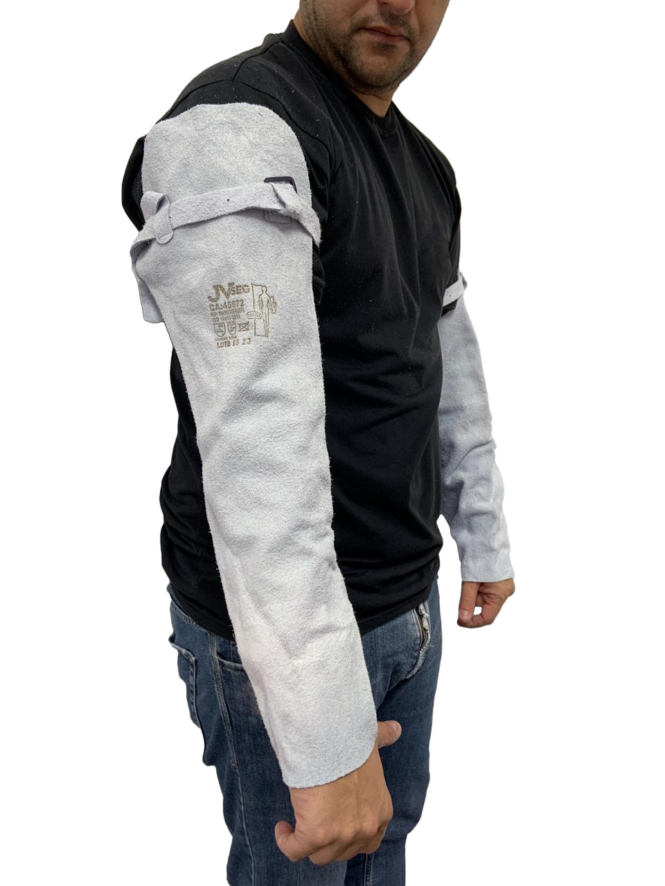 Proteção do antebraço e do dorso da mão contra respingos de solda e fagulhas.