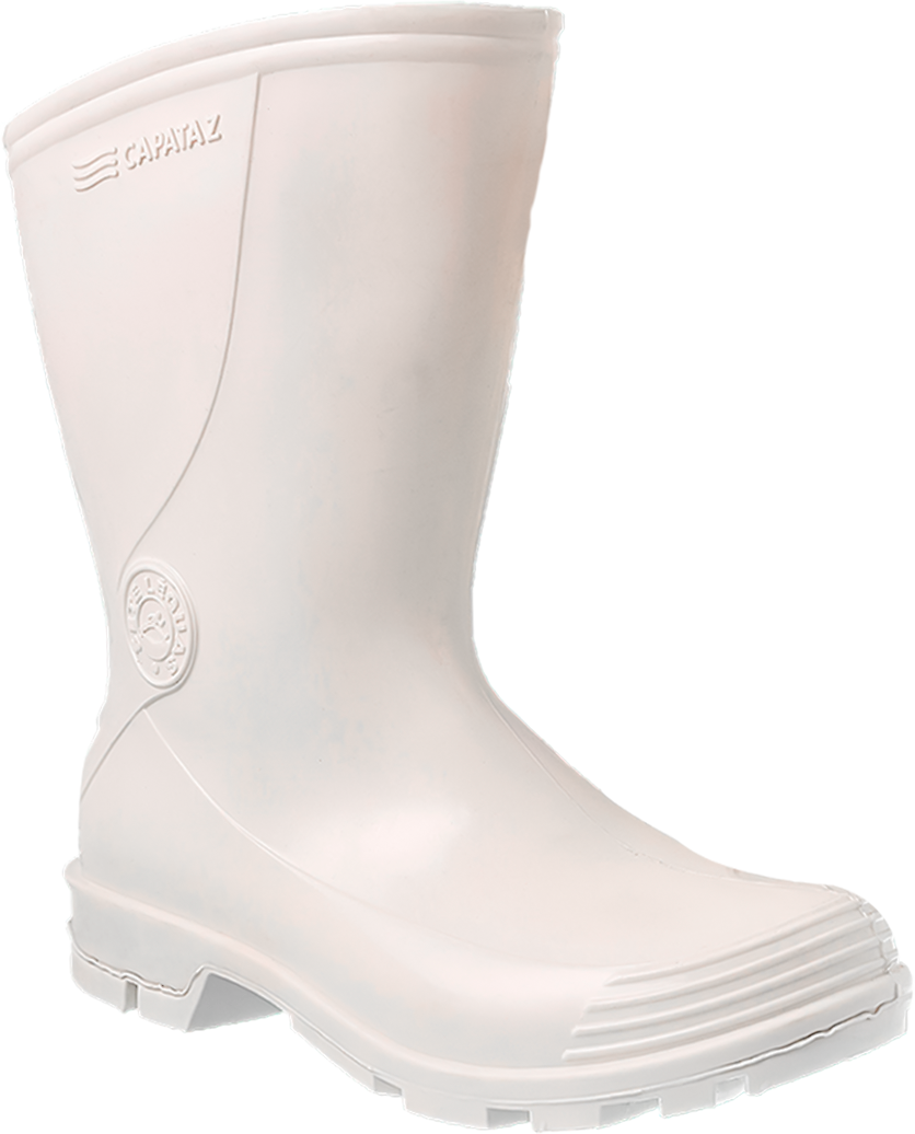 Bota fabricada em PVC injetado, cano de 23cm, solado antiderrapante de fácil higienização, forração interna de malha de poliéster antibacteriana.