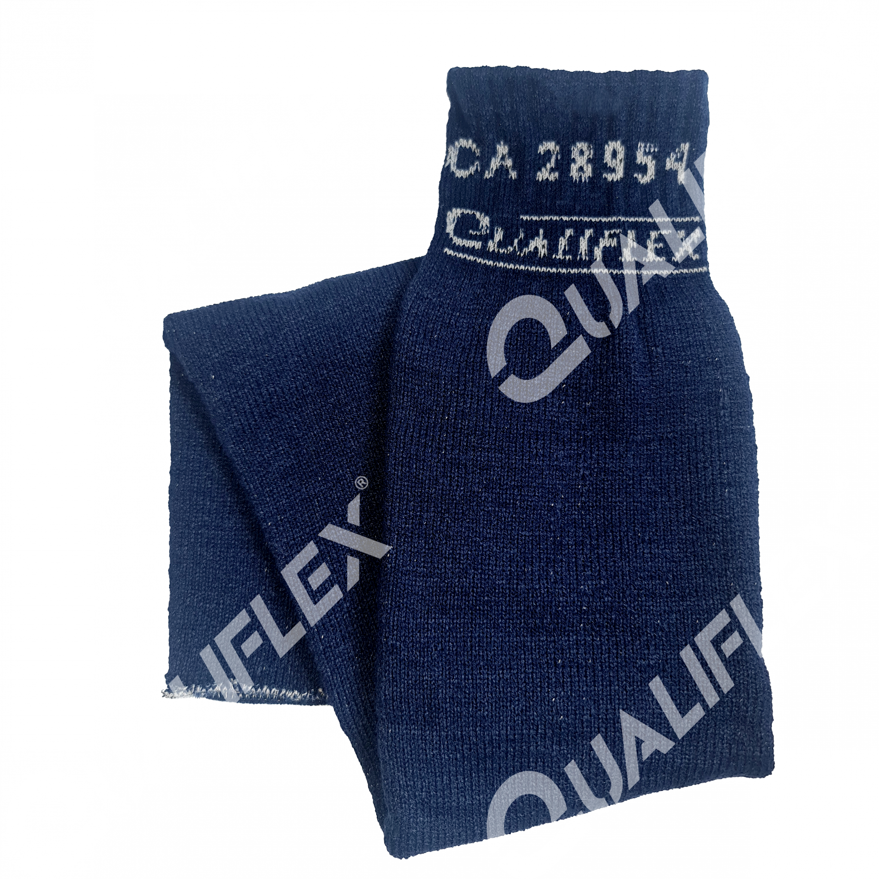Meião térmico confeccionado em lã acrílica – cano longo (comprimento total 60cm), ajuste na região do calcanhar para melhor encaixe nos pés. CA gravado diretamente na malha.